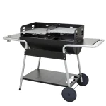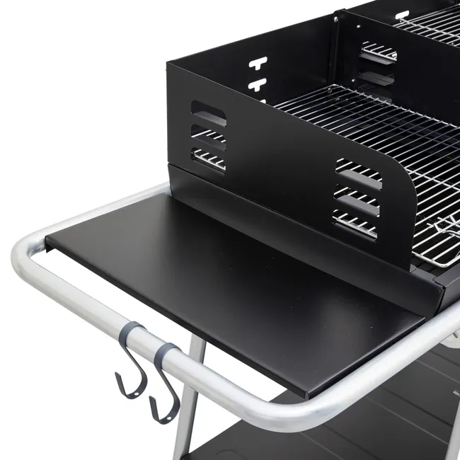 Procurando um churrasco de carvão perfeito para o seu terraço? O churrasco de carvão de Darius é o seu aliado! Refeições quentes adaptadas a todos os tipos de espaço É adequado para pequenos terraços e jardins espaçosos. Quando os dias ensolarados chegarem, compartilhe uma refeição de férias para 6, em torno de receitas que estão fora do comum. Reviva seus convidados, com espetos de abobrinha com pesto de manjericão ou um Camembert assado. Para garantir a grelha à temperatura ideal, sua área de cozimento está equipada com uma grade para ajustar a altura do cozimento. Vantagens técnicas O comprimido lateral e os ganchos permitem que você coloque as placas e tenha os utensílios à mão. Um comprimido inferior é dedicado a colocar sua bolsa de carvão. Dicas de manutenção: Darius pode ser facilmente limpo com um pano úmido e sabão neutro. Graças à sua lareira de ferro fundido, oferece durabilidade real no churrasco. É aconselhável o inverno seu churrasco sob uma cobertura (não inclusive) para não ser afetada por condições climáticas externas.