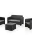 | Composição do conjunto | Conjunto de rattan em trançado composto por duas poltronas individuais, um sofá de dois lugares e uma mesa lateral. |