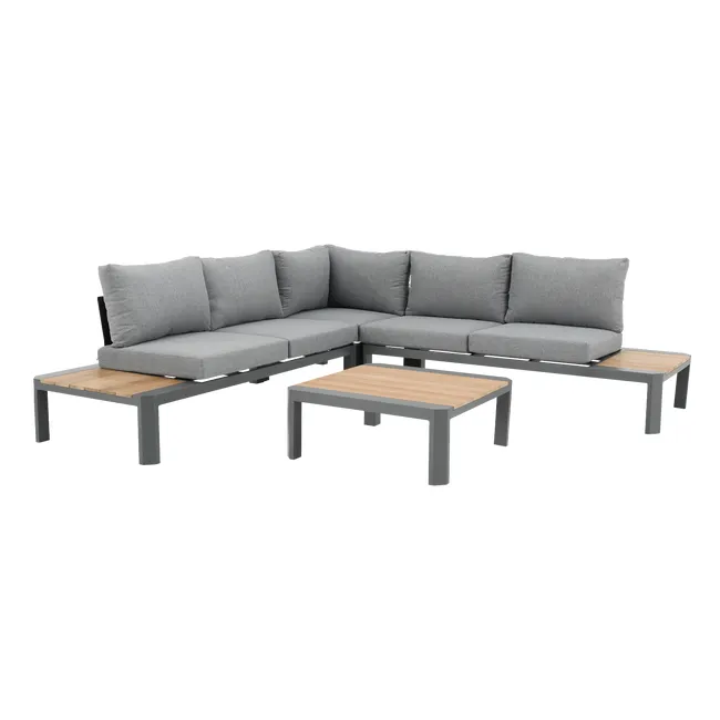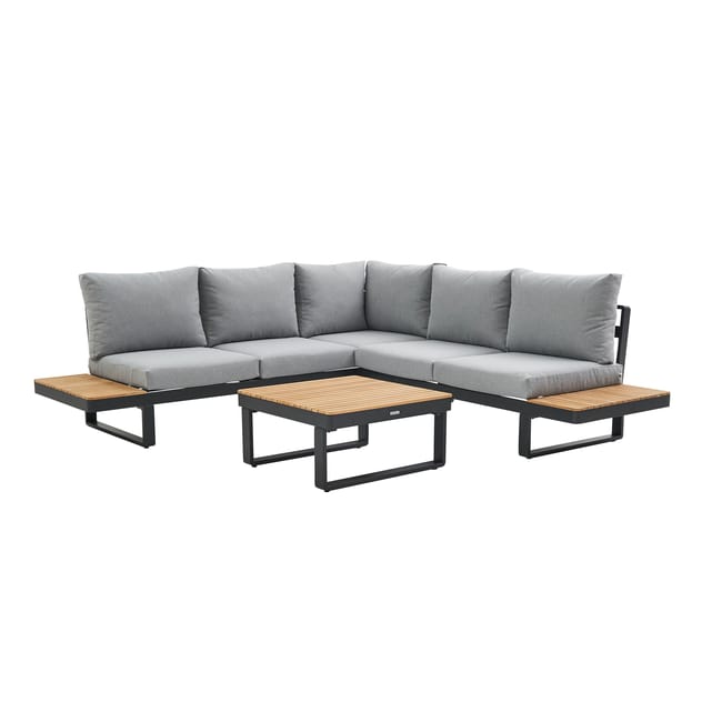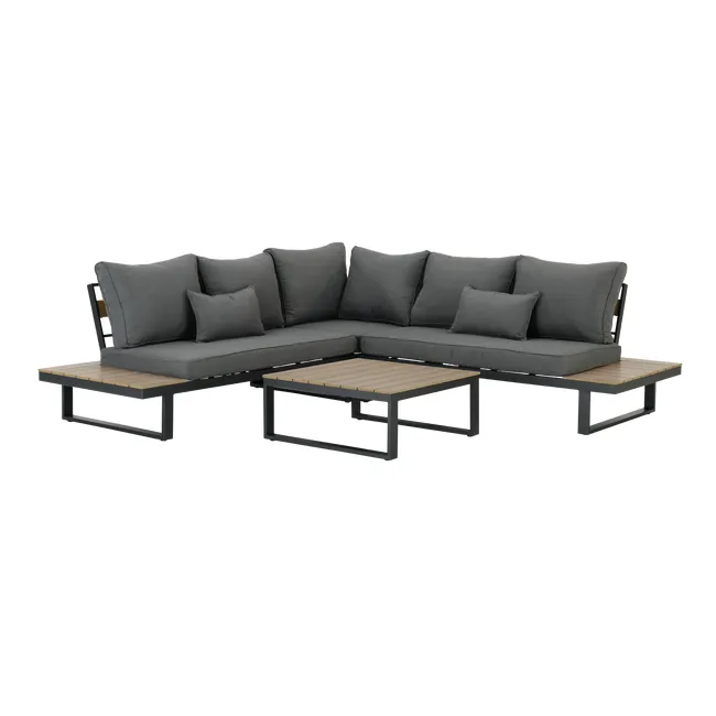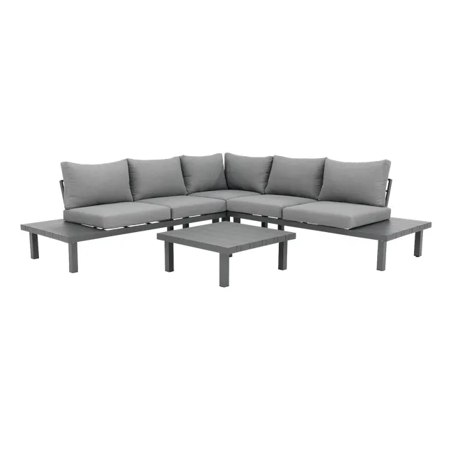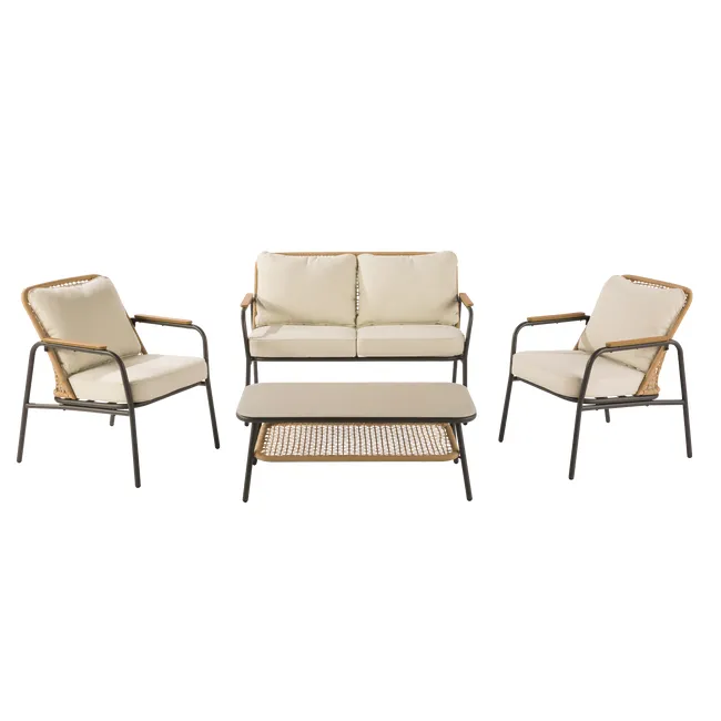 Conjunto de jardim relax resina mesa com arrumação e sofás cinzento 4 lugares Novo Naterial