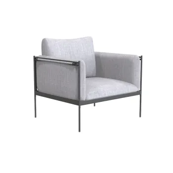 O conjunto de jardim baixo Levo é ideal para pequenos espaços. Inclui uma mesa de café e duas poltronas e foi concebido para oferecer um conforto óptimo. Um assento confortável O conjunto de jardim baixo Levo é perfeito para um pequeno terraço. É composto por uma mesa de café com tampo de vidro, que lhe dá uma superfície plana e estética, e duas poltronas. Cada poltrona tem um grande assento textileno flexível e 4 almofadas, 2 das quais são apoios de braços. São em poliéster, tratados com anti-UV para diminuir a descoloração e repelentes à água. Têm também um tocar mais suave e um aspeto visual semelhante ao do algodão. A estrutura do conjunto é de aço, o que oferece durabilidade e resistência ao seu conjunto. Linhas puras Simples e retilíneo, o design do conjunto Levo dá aos seus espaços um caráter moderno. Combine-o com o chapéu de sol Arkea para um resultado harmonioso. Dicas de manutenção Para assegurar uma longa vida útil ao seu mobiliário, aconselhamos a invernizá-lo sob uma capa impermeável Naterial. As almofadas são totalmente removíveis para facilitar a limpeza. A estrutura das almofadas pode ser facilmente limpa com um pano ligeiramente humedecido e sabão neutro. Em caso de corrosão, aplicar imediatamente um tratamento anti-ferrugem na área afetada.