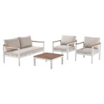 – Alumínio e madeira de eucalipto com certificação FSC® – Tecido não só impermeável, mas também altamente resistente aos raios UV