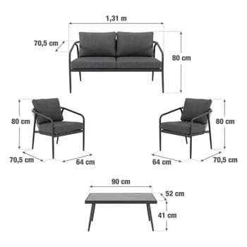 Conjunto jardim relax sofás e 1 mesa alumínio cinzento escuro Talmo Naterial