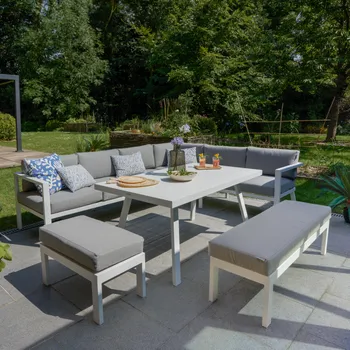 Um conjunto de mobiliário de canto para jardim flexível e moderno