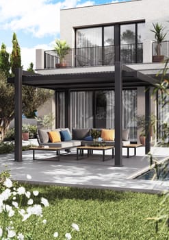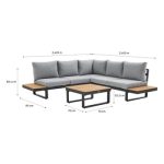 Conjunto relax de canto madeira teca e alumínio cinzento escuro Naterial Persea