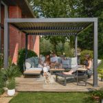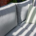 Desfrute de uma pausa para café no terraço do salão de canto Persea. Concebida para acomodar até cinco pessoas, esta sala de estar é composta por um grande sofá de canto e uma mesa de centro quadrada.Fabricado com uma estrutura em alumínio antracite, este lounge possui prateleiras laterais em teca para que tenha sempre as suas bebidas ou pertences por perto. As almofadas de poliéster cinzento oferecem um conforto ideal. Fáceis de manter, são impermeáveis e amovíveis, podendo ser fixados à estrutura para evitar a resistência ao vento.