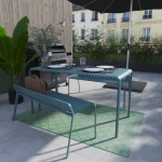 Uma mesa de varanda conveniente e sólida, projetada para ficar lá o ano todo, mesmo nas varandas mais estreitas. Café na varanda em todas as estações A mesa da varanda de Idaho Naterial é ideal para desfrutar da sua varanda ao longo do ano. Para tomar um café no início da manhã, enfrentando o nascer do sol ou para encontrar amigos em torno dos aperitivos, esta mesa permite otimizar o espaço armazenando os assentos diretamente embaixo da mesa e acomodando até 4 pessoas. Feito principalmente de alumínio, esta mesa ao ar livre suporta chuva e névoa salgada da beira -mar. Um alcance elegante e combinável Suas linhas retas e ângulos chanfrados refletem os códigos do estilo designer, reforçados pela escolha do alumínio como o material principal. A gama de produtos de Idaho está disponível em 8 cores que se combinam para permitir que você personalize seu exterior à vontade. O acabamento fosco dessas cores pede esse intervalo nas últimas tendências de decoração. Materiais duráveis e fáceis de manter Seu design de alumínio o torna uma mesa leve e durável. Com seus prendedores de aço inoxidável, ele pode ficar do lado de fora o ano todo. Uma capa protetora simples pode ser adicionada para protegê -la da sujeira de inverno. Prático todos os dias, um pano úmido e um produto neutro são suficientes para manter sua mesa. Durante todo o ano resistência climática8 cores disponíveis